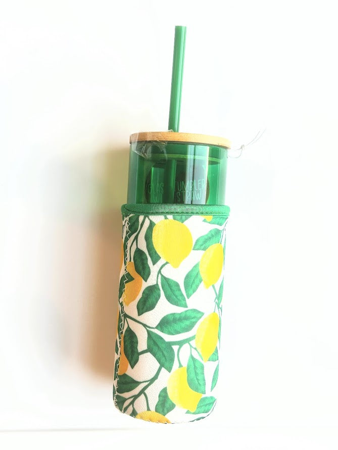- Lemon Sipper Glass with Straw and Sleeve - stay hydrated and healthy by adding a drop of lemon oil to your drink of choice!